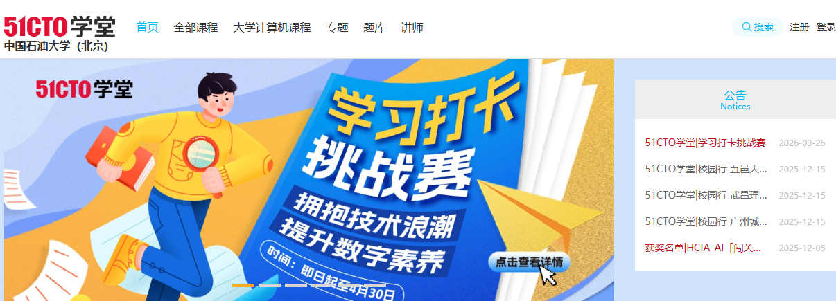 第一步:在校园网内打开“51CTO学堂”(https://e-learning.51cto.com/);