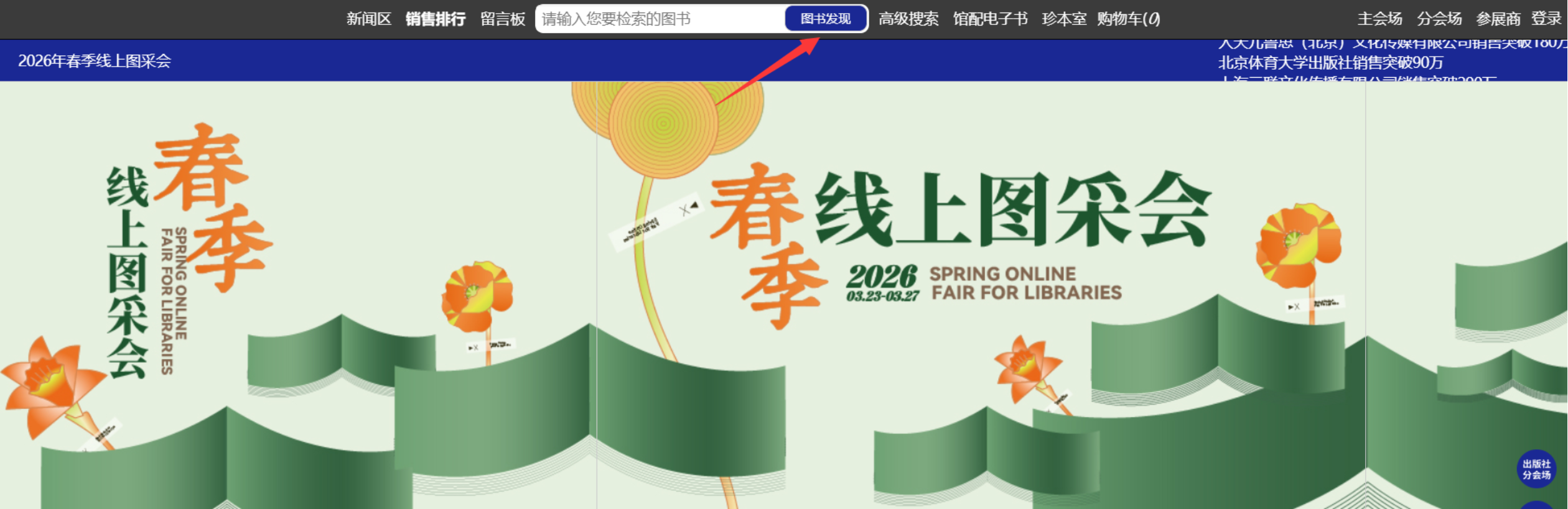 1、主会场:主要展示重点出版社书目,直接点击出版社名称即可进入选书界面。