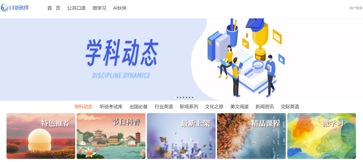 在课程内容方面提供全库的听说资源,包括最新学科动态(人工智能、互联网、物理、金融财经等)、行业英语、新闻资讯、交际英语、文化之旅、出国必备、口语考试库等多个特色专题,全部内容贴近现实,符合学生日常、考试、求职、能力提升的需要。
