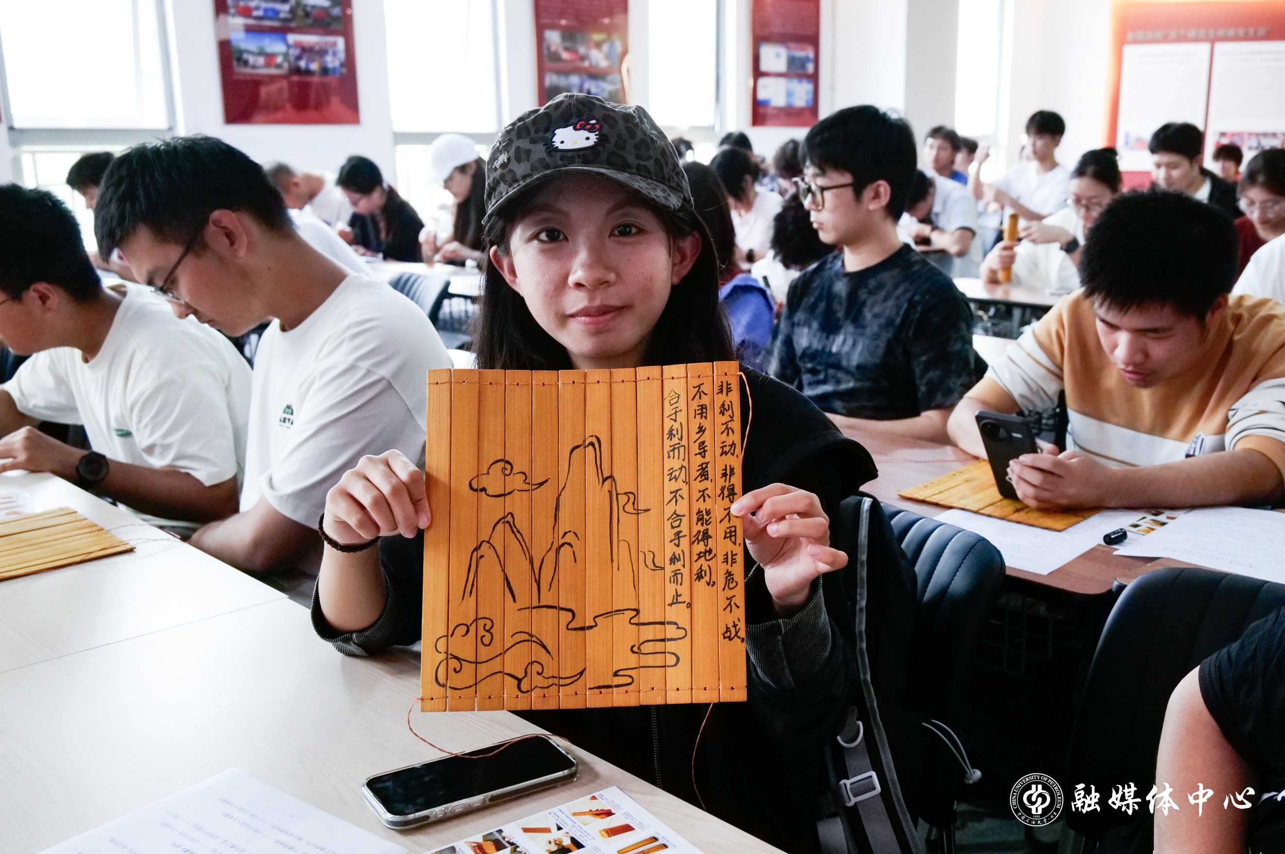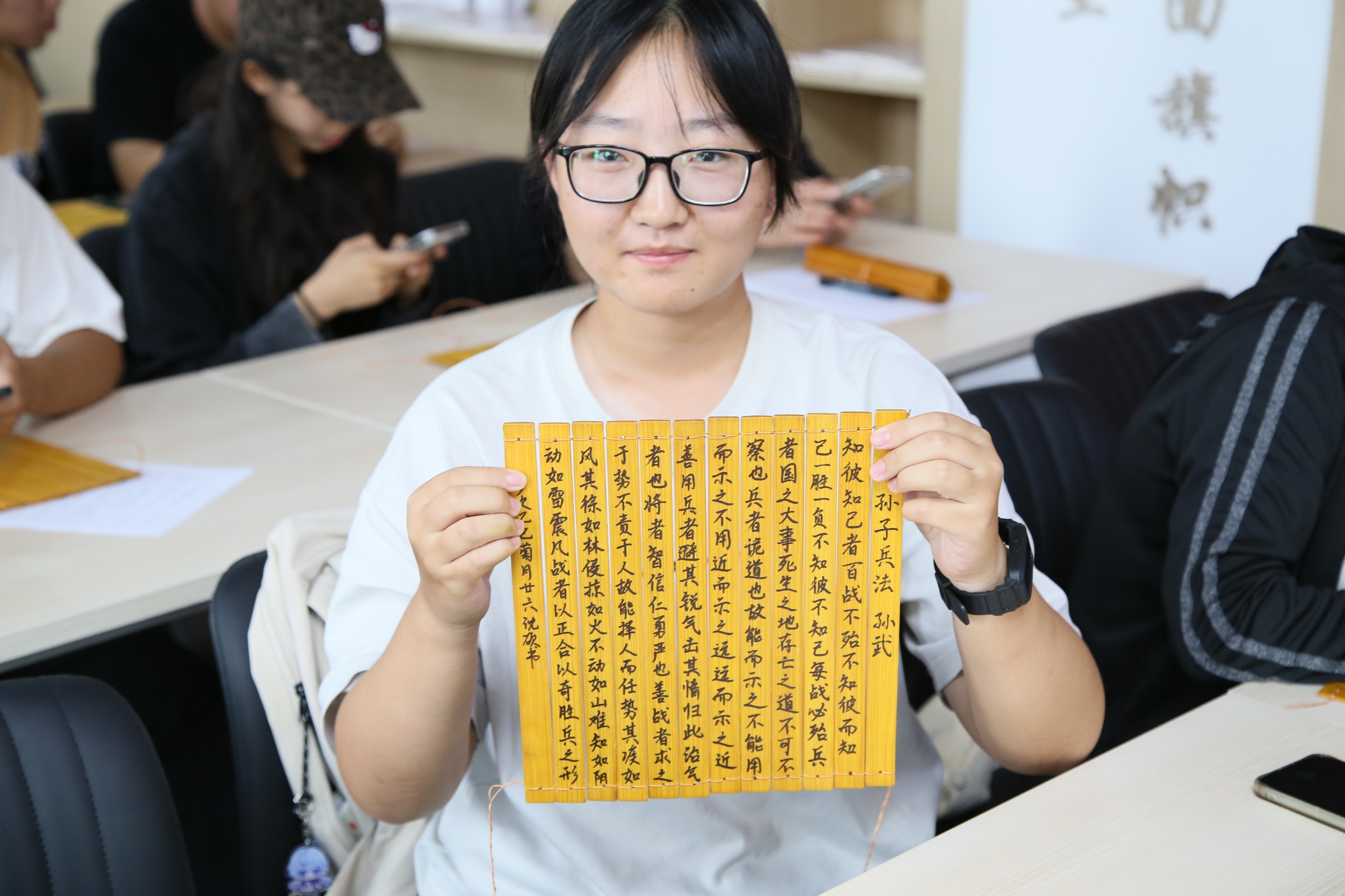 在“典籍视界”环节,师生共同观看了中央广播电视总台《典籍里的中国》节目《孙子兵法》精彩片段。在“古籍新解”环节,人工智能学院超级计算方向师生联合党支部书记孙庆骁、中国科学院计算技术研究所工程师敦明,分别以“《孙子兵法》智慧在现代能源战略中的应用——从‘谋攻’与‘虚实’谈竞争格局”“宁德时代竞争经营策略分析”为题,分享了《孙子兵法》中的战略智慧,分析了现代能源竞争中的攻守策略与资源调度之道。在“古今对话”环节,人工智能学院2025级硕士研究生信明杰和2023级硕士研究生戴闻浩以“古今战略对话”为题表演了微情景剧,剧中春秋军事家孙武“穿越”至现代能源创新实验室,与中石大学子展开跨越时空的对话,通过解能源之需、论竞争之智、谈科研之实等场景,传达出“承兵法智慧,拓能源未来,科技护家国”的理念。在“科技随想”环节,人工智能学院2023级硕士研究生王鑫以“智竞全球:从世界机器人运动会看《孙子兵法》的现代竞技智慧”为题,分享了参加2025世界人形机器人运动会的经历,分析了《孙子兵法》的战略思维对机器人竞技的实战帮助。在“古技今用”环节,师生们亲身体验了“兵法竹简书”制作,以竹片为纸、麻绳为线还原了古代兵书的古朴形制。在“薪火相传”环节,师生们挑选自己喜欢的《孙子兵法》佳句书写在自己制作的竹简书上,并点缀山水纹样、梅兰竹菊等传统意象,既体验传统的文化魅力,又增强战略思维传承的责任感。