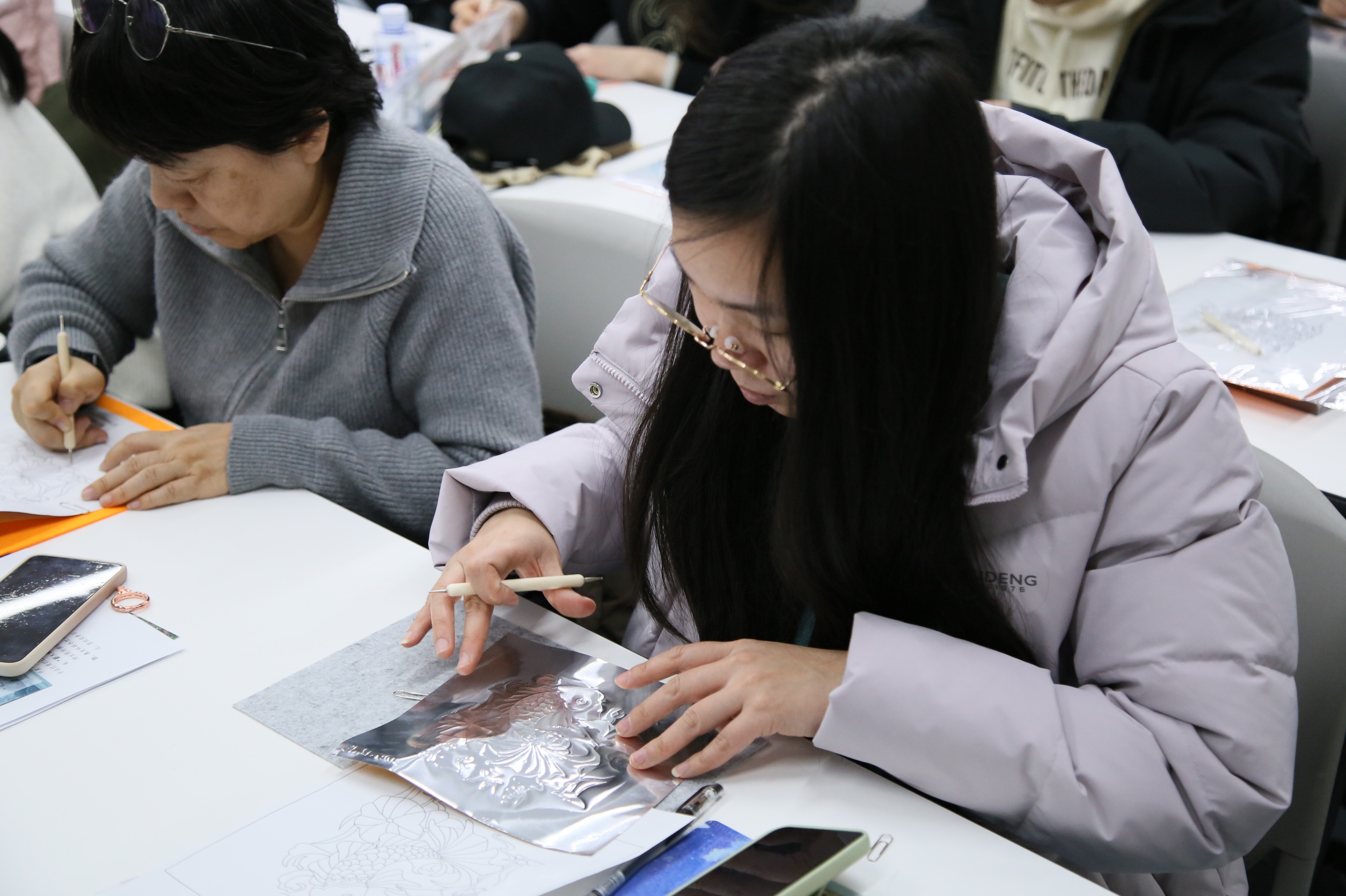 在“典籍视界”环节,师生共同观看了中央广播电视总台《典籍里的中国》节目《周易》精彩片段。在“古籍新解”环节,机械与储运工程学院副教授王吉、图书馆副研究馆员尹成芳分别以以“《周易》当中的自然哲学——蚁群算法介绍”“打开《周易》的图书馆之道”为题,探讨了《周易》“变易”“系统”思想与群体智能算法的内在关联,演示了构建“《周易》哲学—能源战略”研究框架。在“古今对话”环节,机械与储运工程学院能源与动力工程专业2022级本科生杨璞、2023级本科生李向民对比古代顺应自然与现代主动创新的能源利用思维谈阅读感悟。在“科技随想”环节,机械与储运工程学院能源与动力工程专业2022级本科生吕福康以“《周易》智慧赋能节能减排创新实践”为题,现场展示了其荣获第十八届全国大学生节能减排社会实践与科技竞赛特等奖的作品,解读如何将“洞察先机、动态平衡”思想融入技术设计。机械与储运工程学院机械工程专业2024级硕士研究生侯润彤以“古智今用,和合共生——《周易》思想在机器人与智能装备的跨学科探索”为题,介绍了在人形机器人运动调控中融入“阴阳平衡”“动态调和”理念的研究探索,并现场进行了机器人行走演示。在“古技今用”环节,师生共同体验了“锡纸浮雕画”手工制作,运用阴刻、阳刻手法创作在动手实践中直观感受“阴阳相济”的视觉表达与工艺智慧。在“薪火相传”环节,师生挑选《周易》中“天行健,君子以自强不息”“地势坤,君子以厚德载物”等经典语句书写在摘抄卡片上,激发起大家在能源变革与科技创新道路上持续求索的使命感与传承担当。