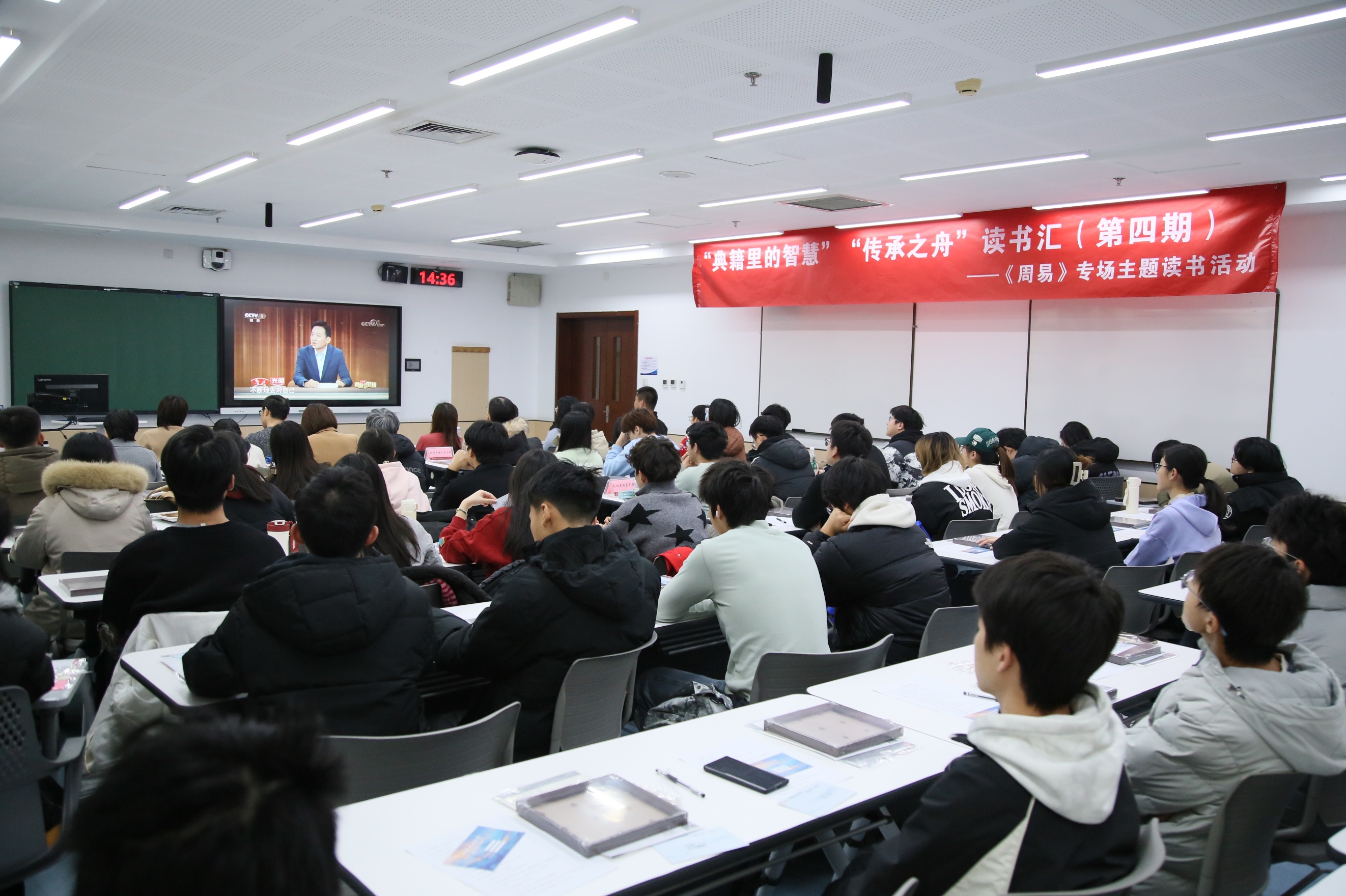 为传承中华优秀传统文化,引导师生在能源变革与科技创新的时代背景下增强战略定力与系统思维,12月18日,由中国石油大学(北京)图书馆、机械与储运工程学院联合主办,百草园书社协办的“典籍里的智慧”“传承之舟”读书汇(第四期)——《周易》专场主题读书活动在四教智慧教室201举行。图书馆、机械与储运工程学院负责人,图书馆第一党支部、机械与储运工程学院能动系教工党支部、机械与储运工程学院能动本科党支部党员代表及学生代表共近80人参与了活动。
