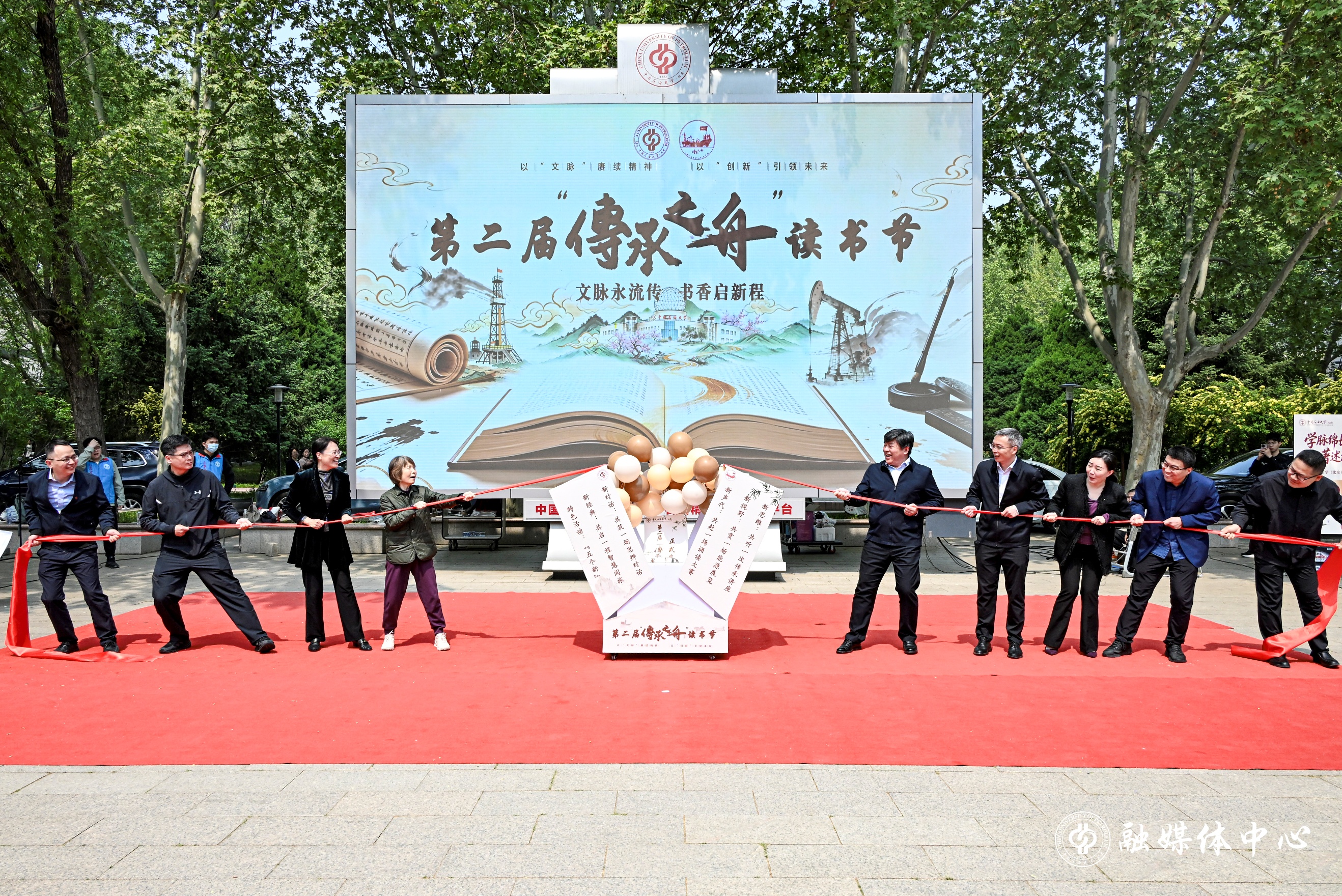 为深入贯彻落实《全民阅读促进条例》,持续推进新时代立德树人工程,扎实推进全国青少年学生读书行动、“典耀中华”主题读书行动、“书香激昂青春”学生读书行动,巩固书香校园建设成果,正值国家首个“全民阅读活动周”期间,在第31个“世界读书日”之际,4月23日,中国石油大学(北京)第二届“传承之舟”读书节启动仪式在北校园南广场举行。