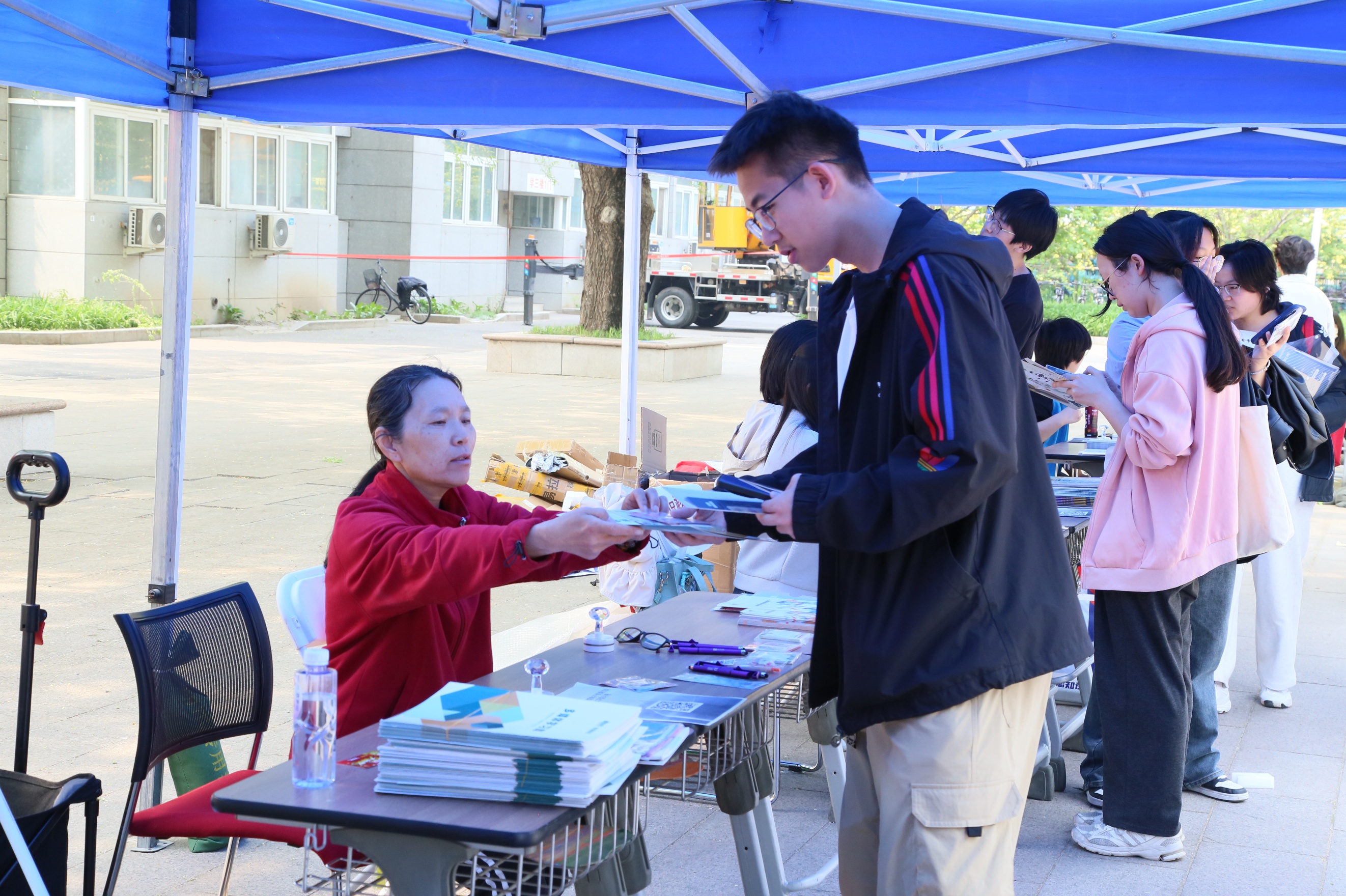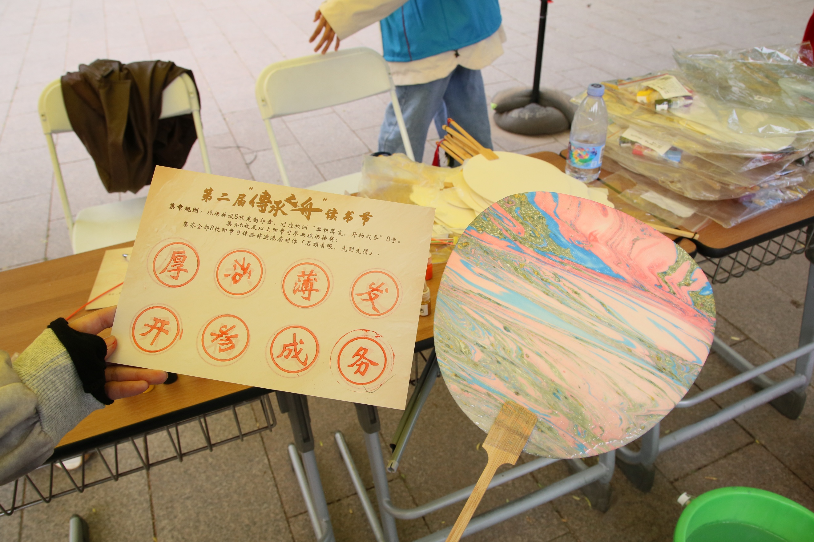 活动现场还特别推出校训主题集章打卡活动。师生转发活动推送即可在入口处领取集章卡,卡片对应校训“厚积薄发,开物成务” 8枚定制印章,完成展区体验与互动任务即可集章。集齐印章可参与现场抽奖、非遗漆扇制作,让阅读与非遗文化碰撞出新的火花。