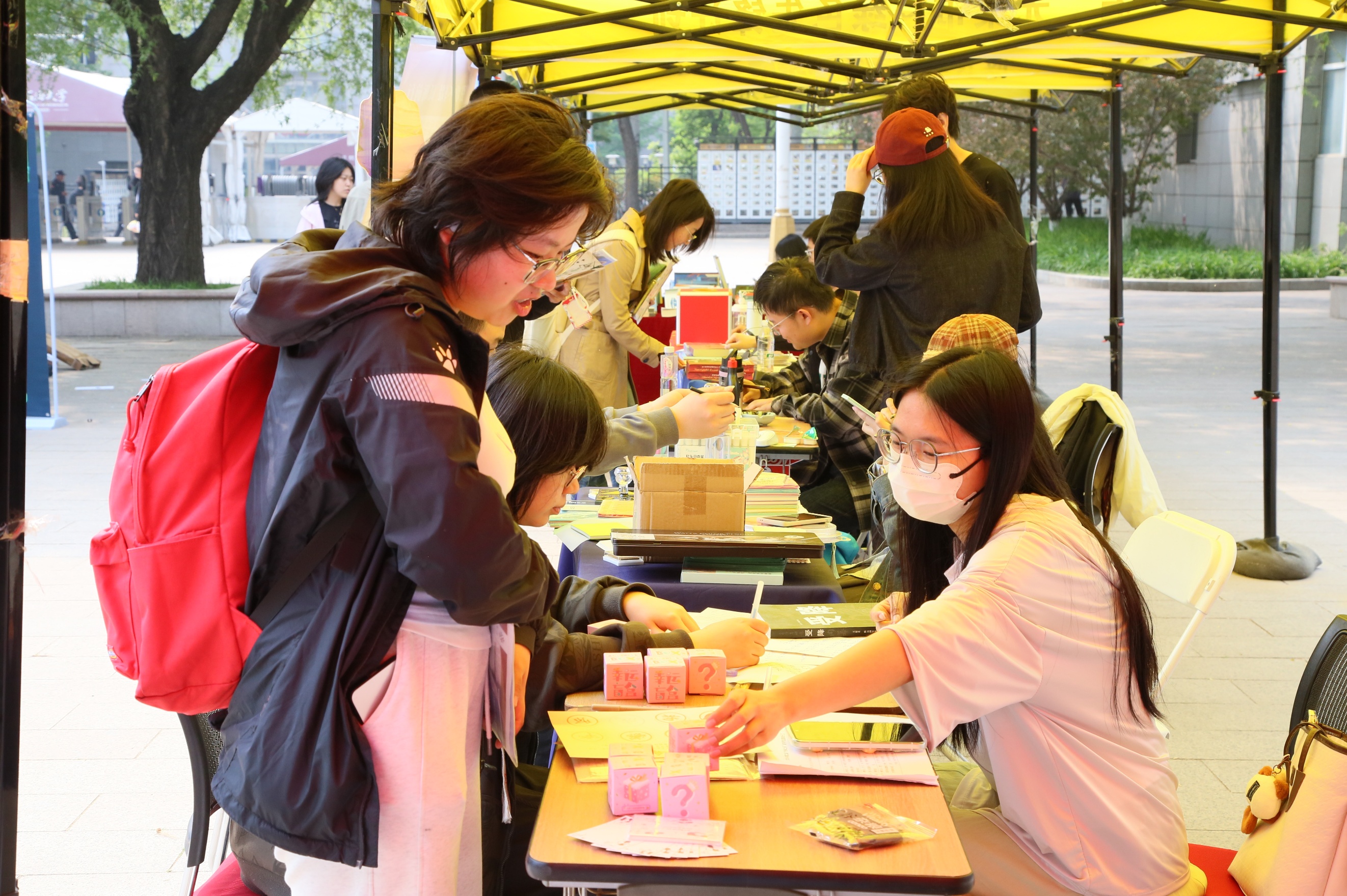 “文趣游园:社团互动区”内,丹青书画社、海燕文学社、桑格美术社、青年研习社、人文艺术发展协会、百草园书社、校史宣讲团7个学生社团集中开展了“笔墨丹青·雅集共赏”“诗海万象 名著风华”“刻·绘·印——藏书票三味体验站”“长征记忆:于翻页间重走,在思考中传承”“文脉拼贴 书香成物——经典拼贴诗创作”“草木拾书 静读时光”“时光印记·校史挑战赛”经典阅读活动,以趣味互动让阅读融入校园生活。