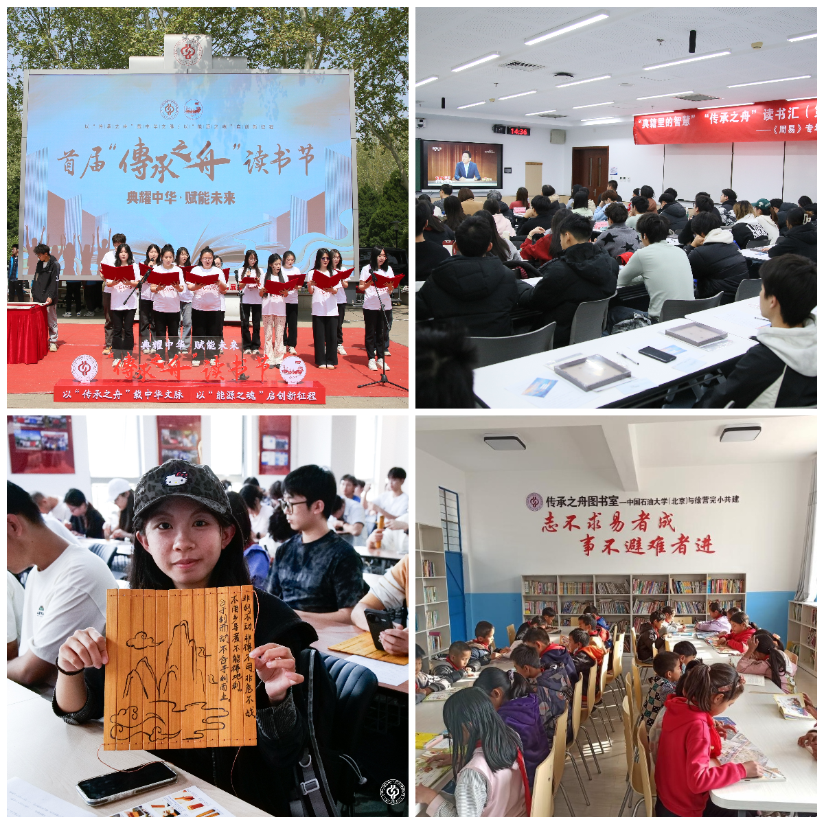 “青阅领读”旨在表彰在校园阅读推广中表现突出、具有示范引领作用的读书品牌。荣获北京市校园读书季“青阅领读”榜样的中国石油大学(北京)“传承之舟”阅读活动,是学校自2017年立足能源特色高校办学定位打造的读书品牌,寓意一艘承载着深厚中华文化底蕴的航船在文化传承的海洋中破浪前行:在打造“精神传承之舟”中培根铸魂厚植情怀、启智润心点亮心灵,在打造“文化传承之舟”中赓续红色基因薪火、“出彩”“出圈”中华文化,在打造“知识传承之舟”中融合探究阅读资源、个性精准经典荐读,在打造“爱心传承之舟”中升华教育扶贫实践、捐书助力乡村振兴,构建起能源特色鲜明、贯穿全年、覆盖全域、联动校内外的高质量阅读育人体系。