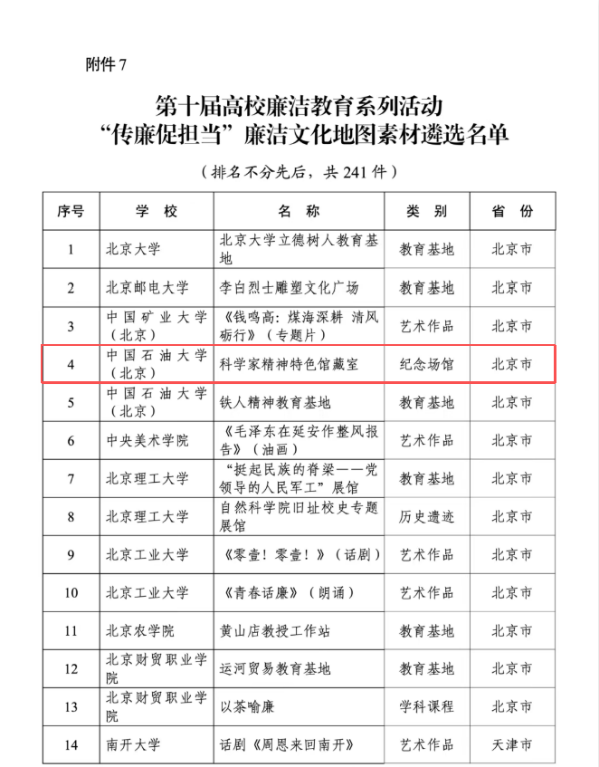 中石大科学家精神特色馆藏室入选教育部廉洁文化地图素材