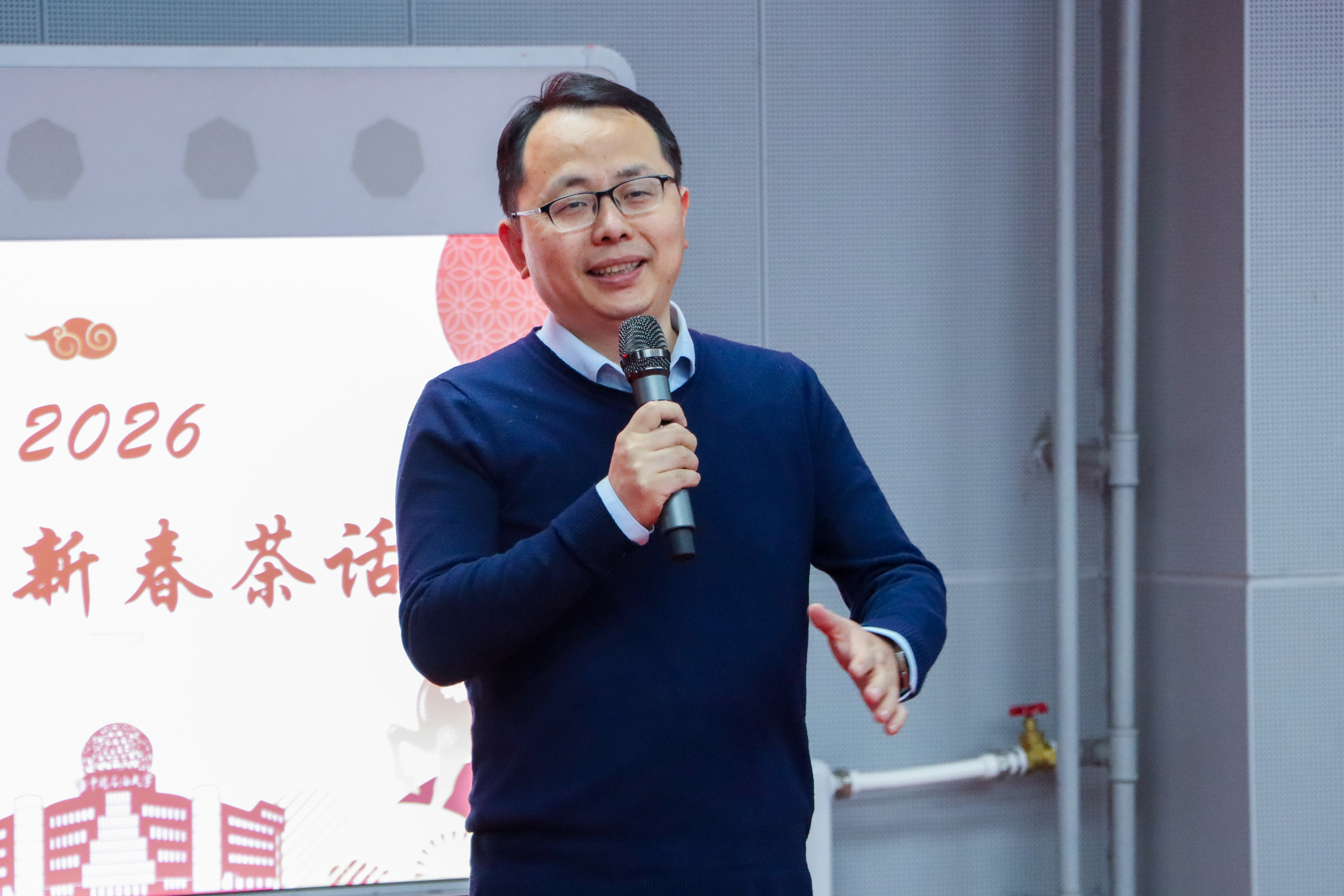 茶话会伊始,图书馆党总支书记、馆长叶海木发表新年致辞。他全面回顾了 2025年度两馆在文献资源建设、档案资源体系建设、智慧图书馆建设、图情研究、信息素养教育、空间优化、校史宣传教育、书香校园建设、文化育人等各项工作中取得的成效与付出的努力,向全体教职工的辛勤耕耘与通力协作致以诚挚谢意,并向大家送上温馨美好的新春祝福。