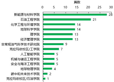 本期中国石油大学(北京)共有226篇高被引论文,详情见附表2。其中第一作者或通讯发文141篇,论文学院分布见图3。