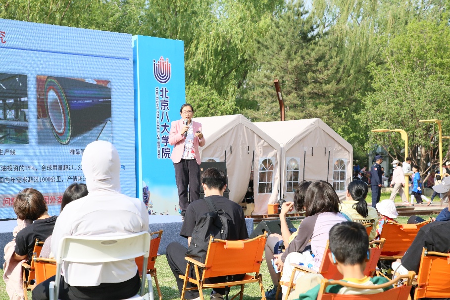 在“学院TALK”环节,学校吕静老师作了题为“您身边的石油与新能源”的专题报告,结合日常生活中的石油“印记”,讲解了石油形成过程、开采技术、炼制工艺,阐述了能源变革中的新能源类型和技术图谱,增强了公众对石油发展和能源未来的认知与理解。