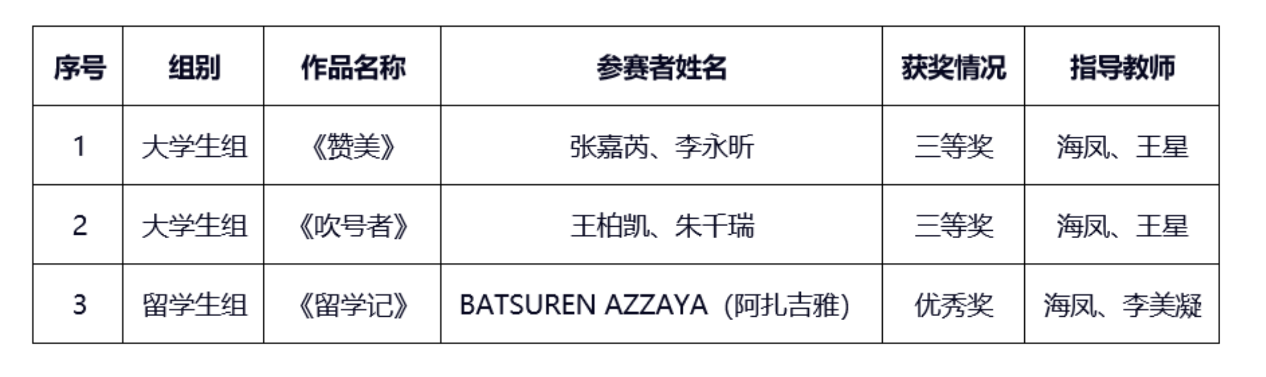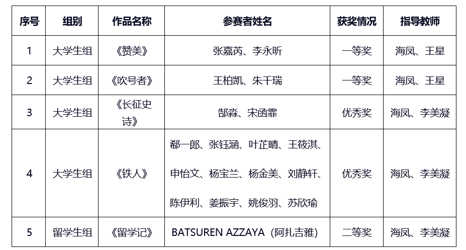 图书馆指导的参赛学生均为参加第二届“我是朗读者”诵读大赛的优秀选手。在第七届中华经典诵写讲大赛“诵读中国”经典诵读大赛全国总决赛中,张嘉芮、李永昕,王柏凯、朱千瑞分别获大学生组三等奖,留学生阿扎吉雅(BATSUREN AZZAYA)获留学生组优秀奖,实现中石大学生在全国总决赛中成绩的历史性突破。在2025年北京市中华经典诵读工程系列活动暨第七届中华经典诵写讲大赛“诵读中国”经典诵读大赛北京市初赛中,张嘉芮、李永昕,王柏凯、朱千瑞分别获大学生组一等奖;郜淼、宋函霏,郗一郎、张钰涵、叶芷晴、王筱淇、申怡文、杨宝兰、杨金美、刘静轩、陈伊利、姜振宇、姚俊羽、苏欣瑜分别获大学生组优秀奖;留学生阿扎吉雅(BATSUREN AZZAYA)获留学生组二等奖。图书馆海凤被评为“诵读中国”经典诵读大赛初赛优秀指导教师。